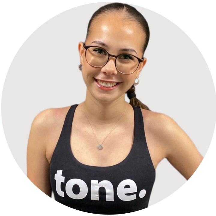 tone. is a high intensive full-body workout on pilates-inspired reformer machines with low-impact on the joints. The light is dark blue and the music is up. The workout uses slow and controlled movements, scientifically designed to challenge your muscles and thereby strengthen them. For results you can see and feel. Create the strongest version of yourself.